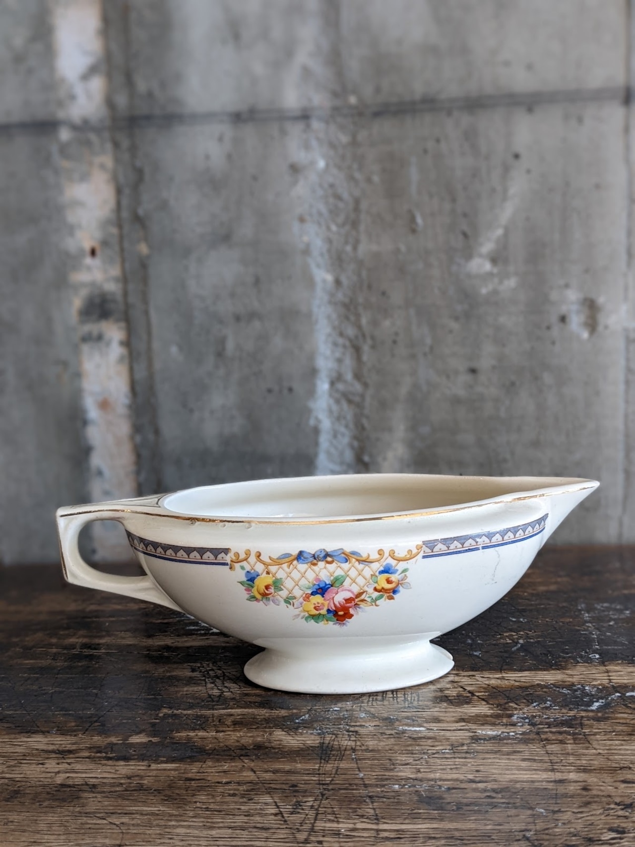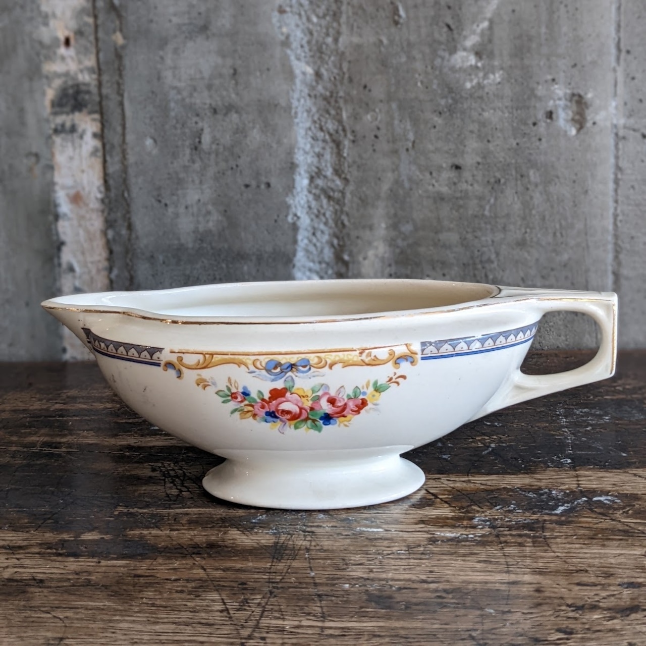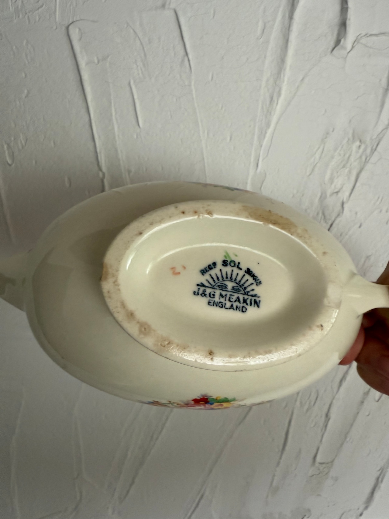 イギリス・スタッフォードシャーの名窯 J&G Meakin(ジェイ&ジー・ミーキン) による、1930〜40年代頃のアンティーク・グレービーボート。