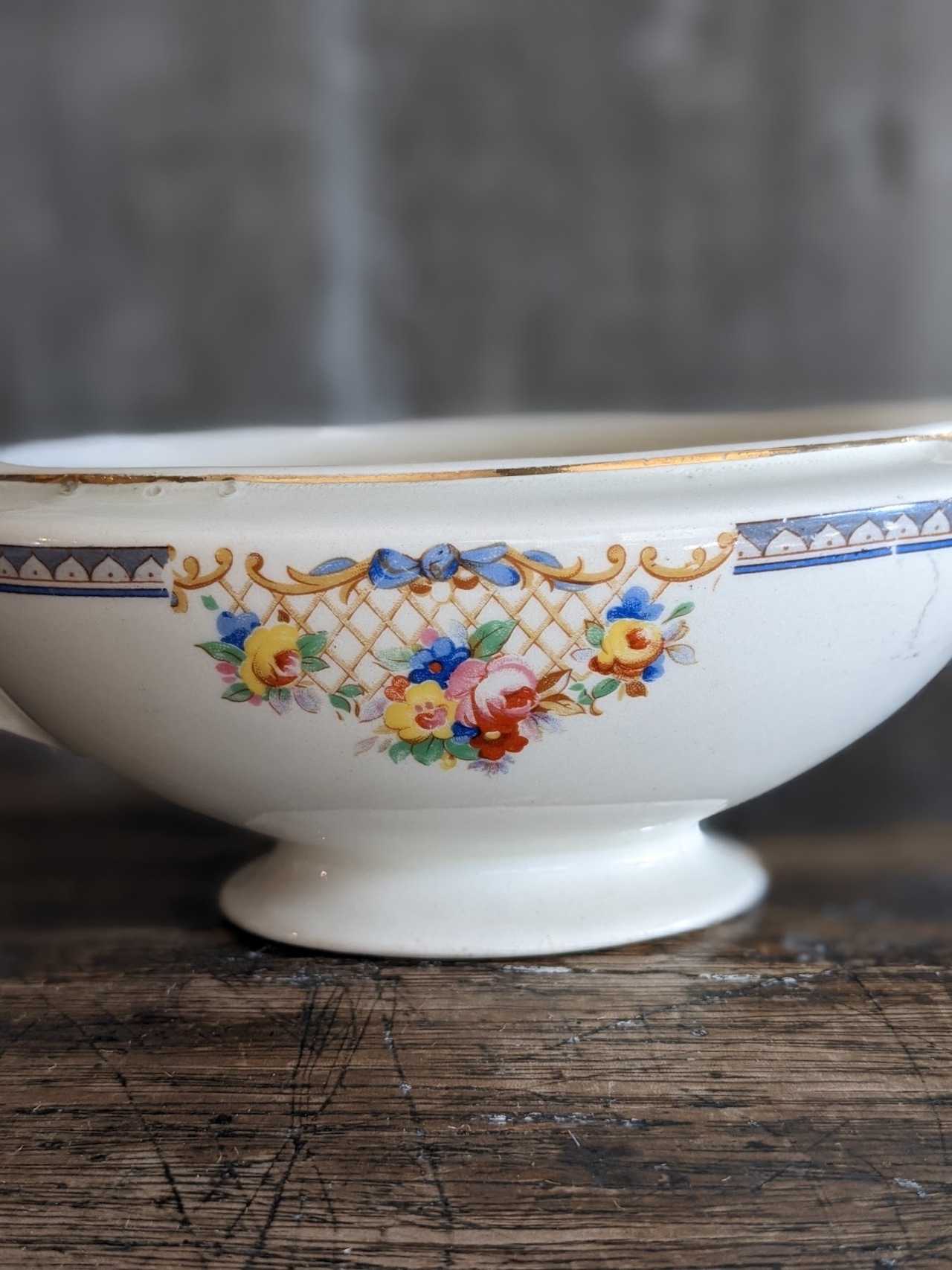 経年による細かな貫入や金彩のスレが見られますが、アンティークならではの風合いとしてお楽しみいただけます。