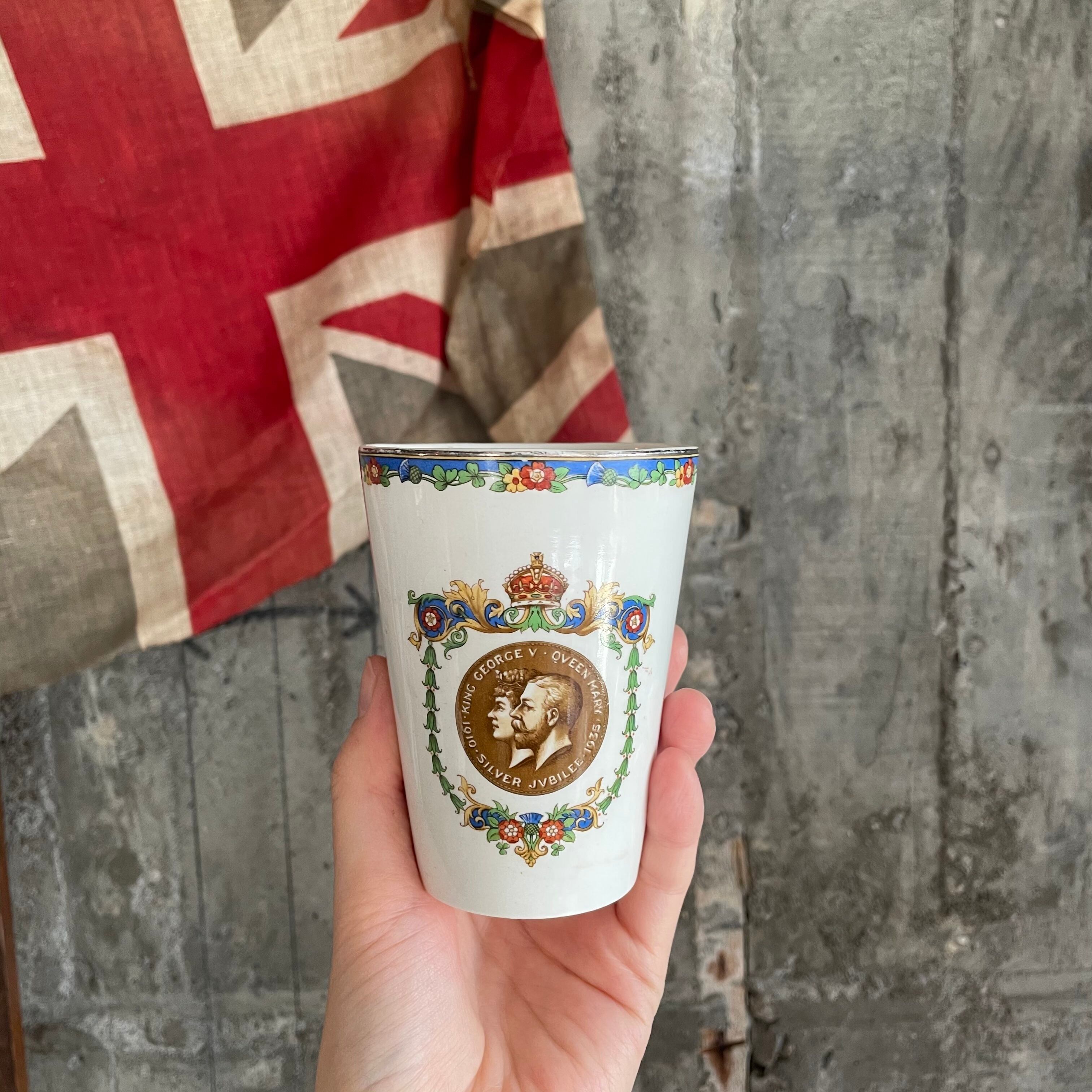 1935年にジョージ5世の即位25周年のシルバージュビリーを記念して作られたコロネーションカップです。